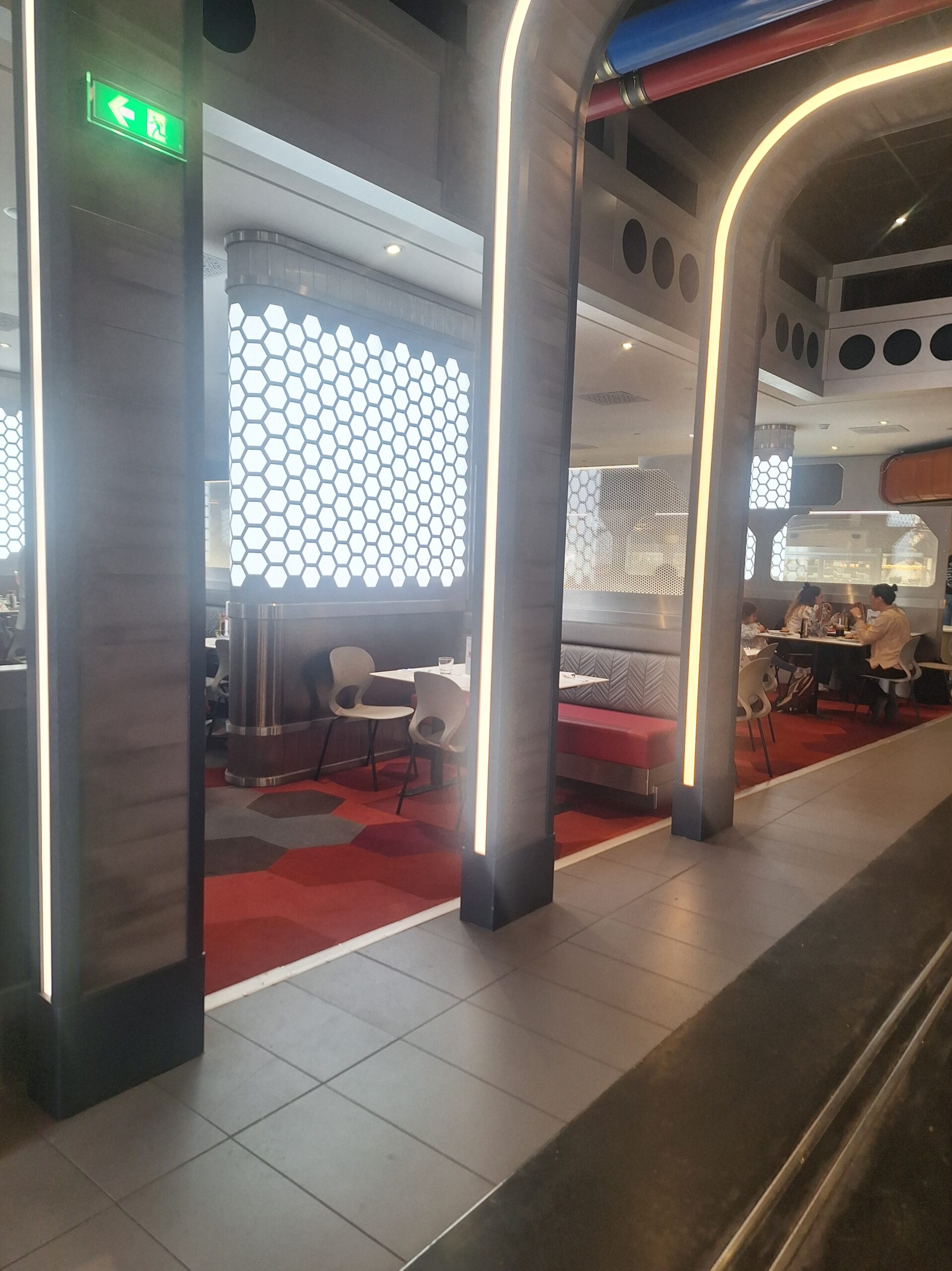Y comimos en un Restaurante que ya conocía de todos los viajes anteriores que hice pues siempre que vengo a este parque ( el parque «pequeño» para entendernos comemos en el mismo restaurante se llama Pym Kitchen es de Buffet y esta muy muy bien esta tematizado en un laboratorio y esta ubicado en la zona de los super heroes de Marvel, Spiderman , los Avengers etc.