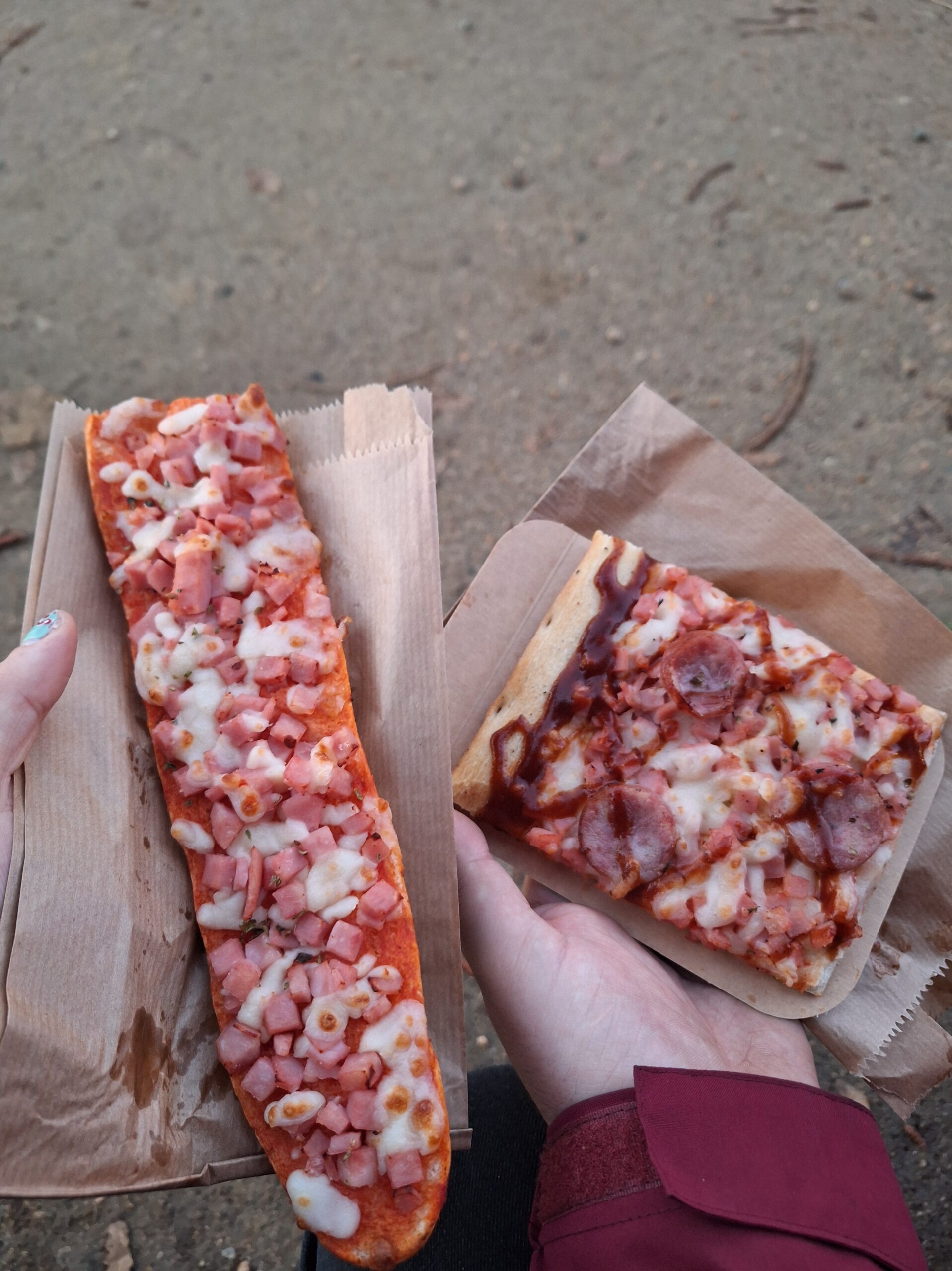 Hoy vine como todos los años a ver la Navidad de Pontevedra con su carismáticos muñecos navideños de soldaditos, sus figuras , comparsas y animadores, y comerme un panini del Bocalino que es algo muy mítico y típico aquí en Pontevedra: las pizzas al corte!! Y por ultimo un chocolate a la taza.
