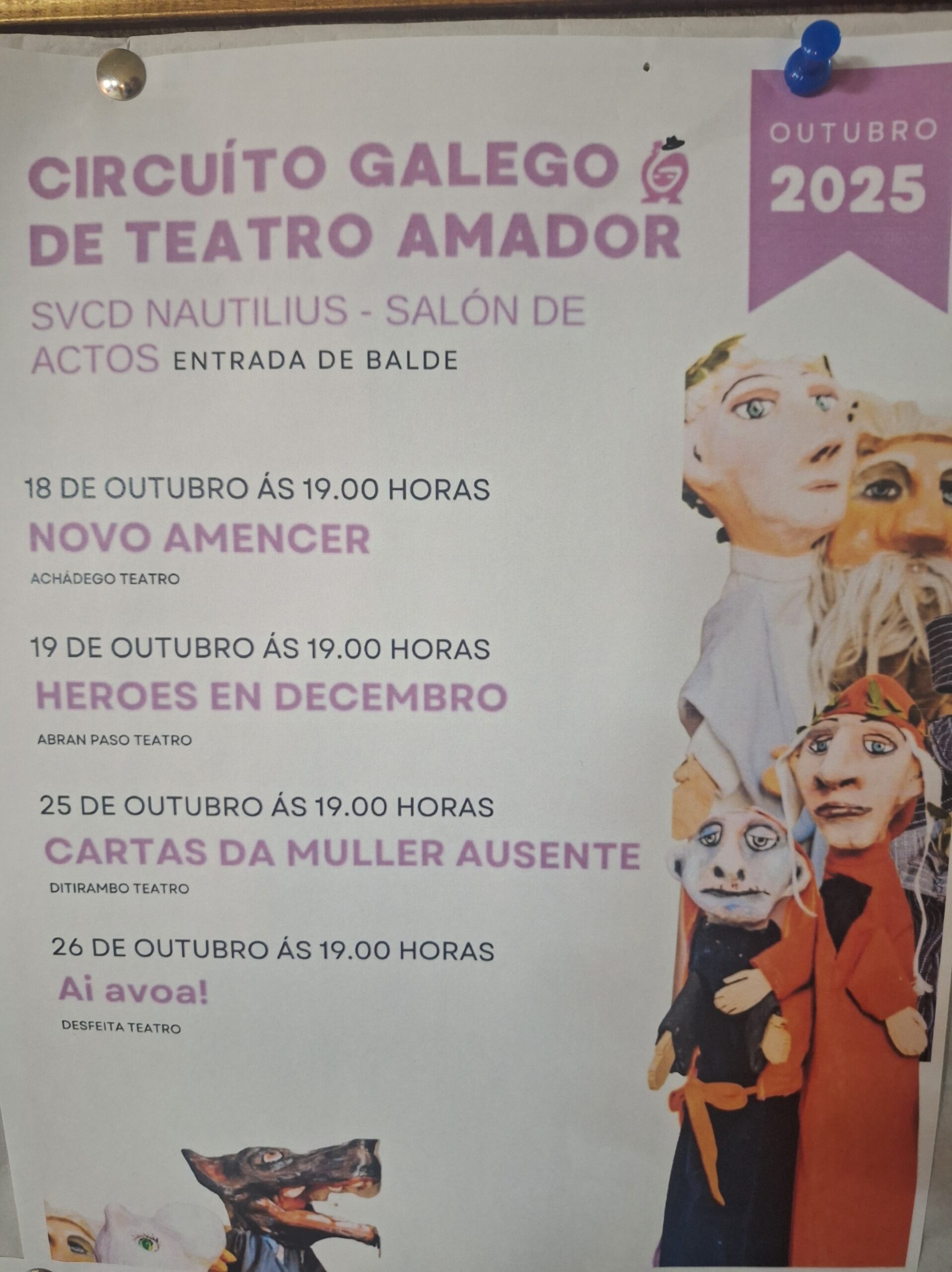 Y CON ESTA OBRA ACABO EL CIRCUITO DE TEATRO DE ESTE AÑO EN EL CENTRO CULTURAL NAUTILIUS DE SAN ANDRÉS DE COMESAÑA SIENDO ESTA SU 19° EDICION.