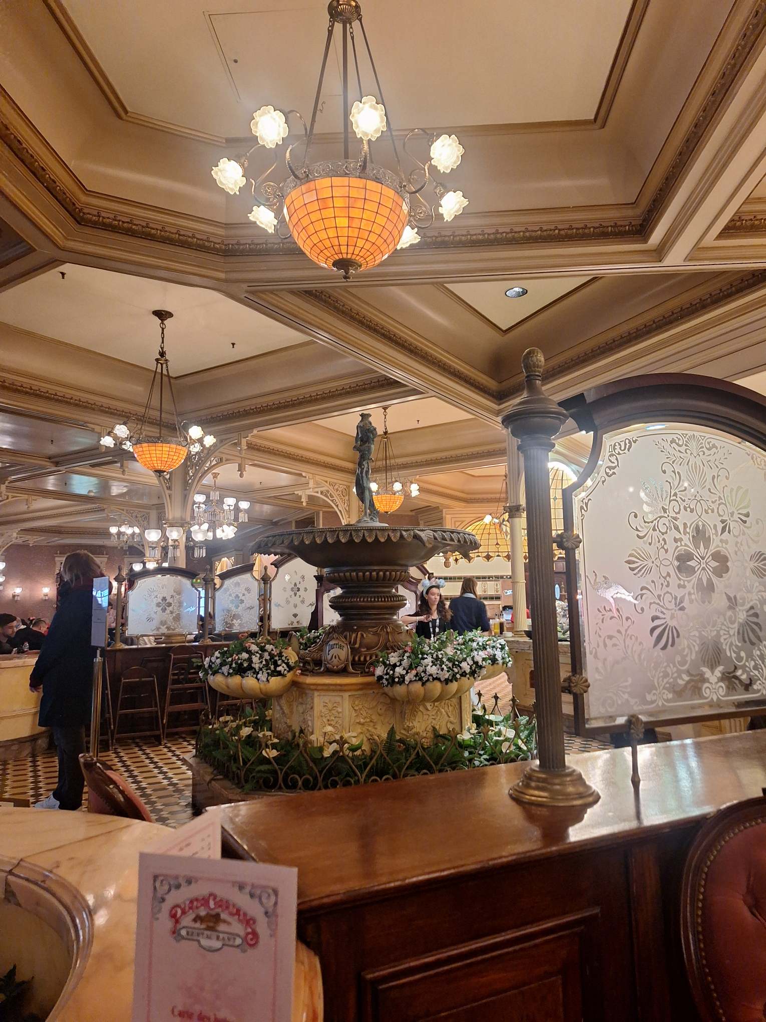 Hoy comimos al mediodía en el Restaurante Plaza Gardens es un restaurante muy elegante y enorme , es de buffet aunque también tienen carta y es un restaurante que está dentro del Parque en el que puedes comer con los personajes eso si esto siempre se paga aparte sería un extra. Este restaurante es uno de mis favoritos y está situado en Main Street en la primera zona del Parque Disneyland camino al castillo muy cerca de Fantasyland y comimos en él hoy Viernes y el domingo, pues el Sábado estuve todo el día entero en el Parque de los Studios y comi dentro de los Studios en la zona de Marvel en el Restaurante Pym Kitchen.