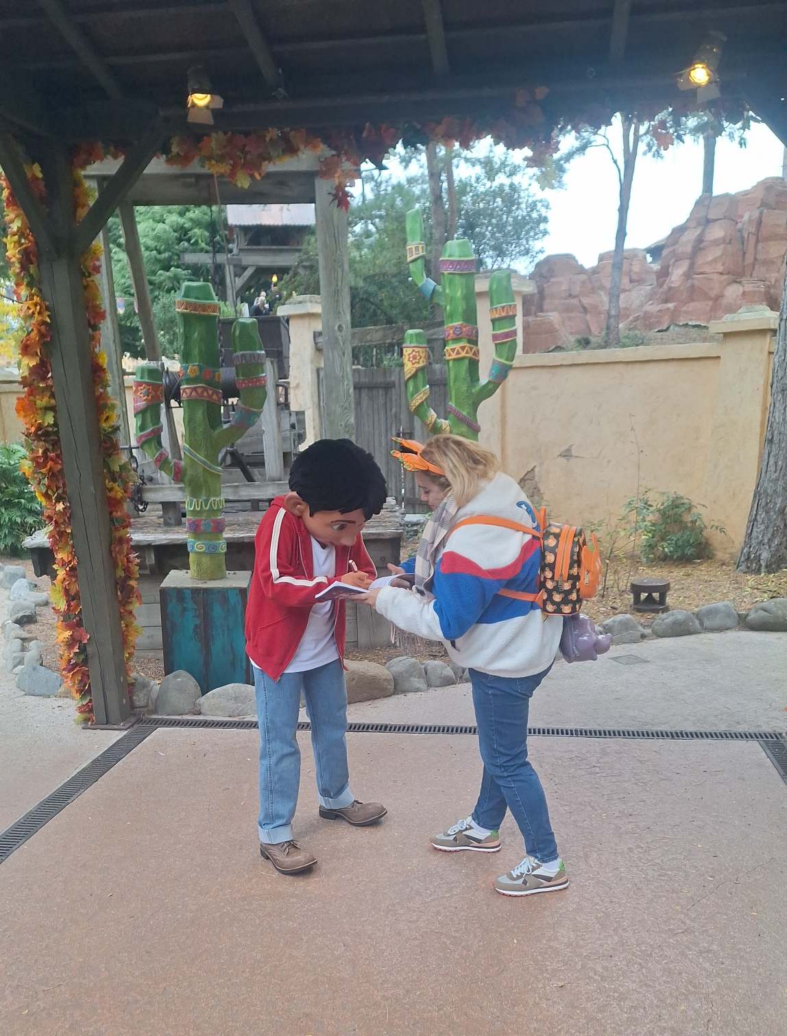 Hoy tuve 4 encuentros con personajes primeramente Tiger, Gastón, Chersee y Miguel (Coco), pues el encuentro con Mickey estaba en obras y seguirá en obras hasta primavera 2026 aprox para mejorarlo y ampliarlo. Lo vi al dia siguiente en el Parque de los Studios donde lo pusieron ahora provisionalmente.
