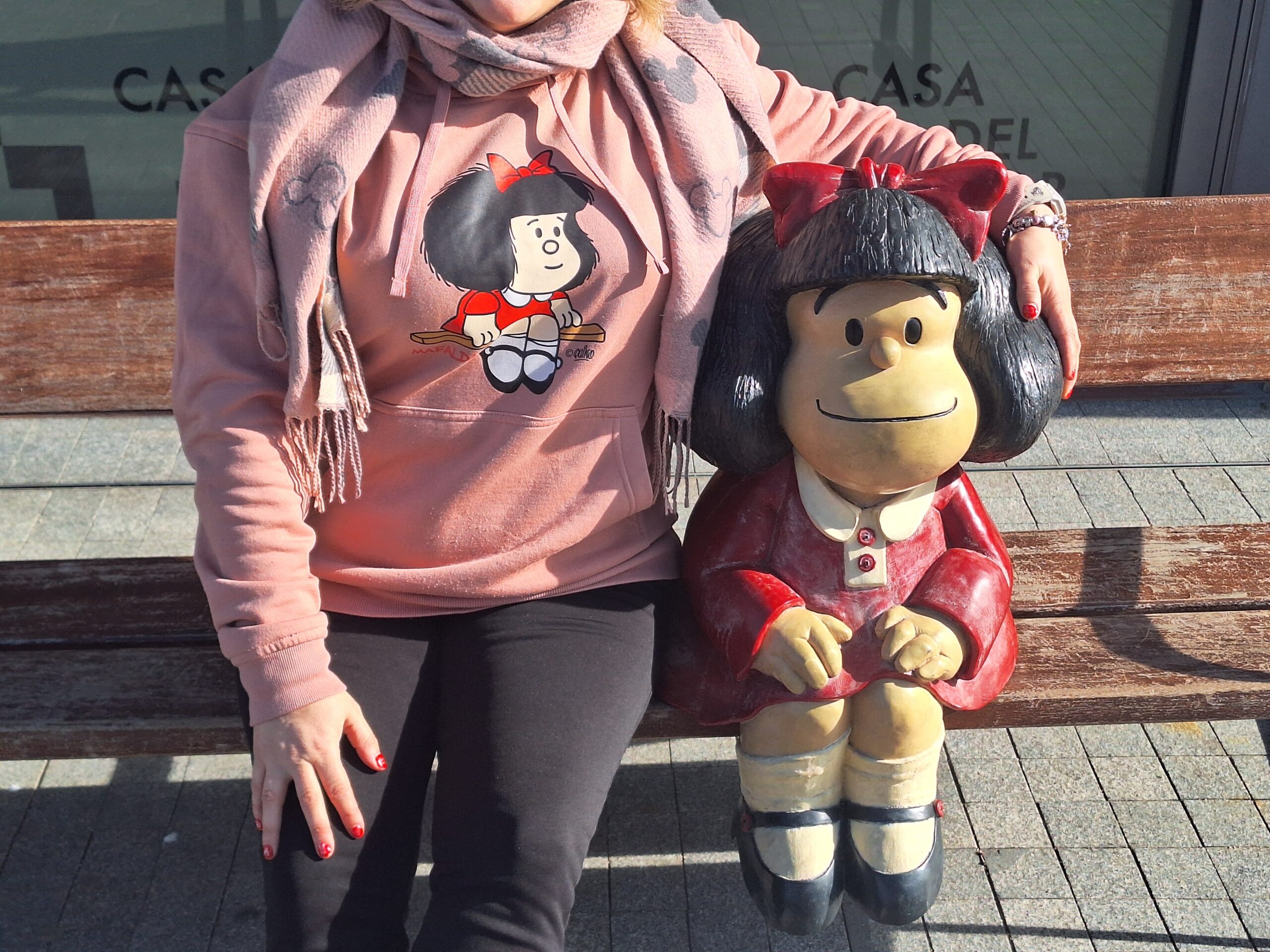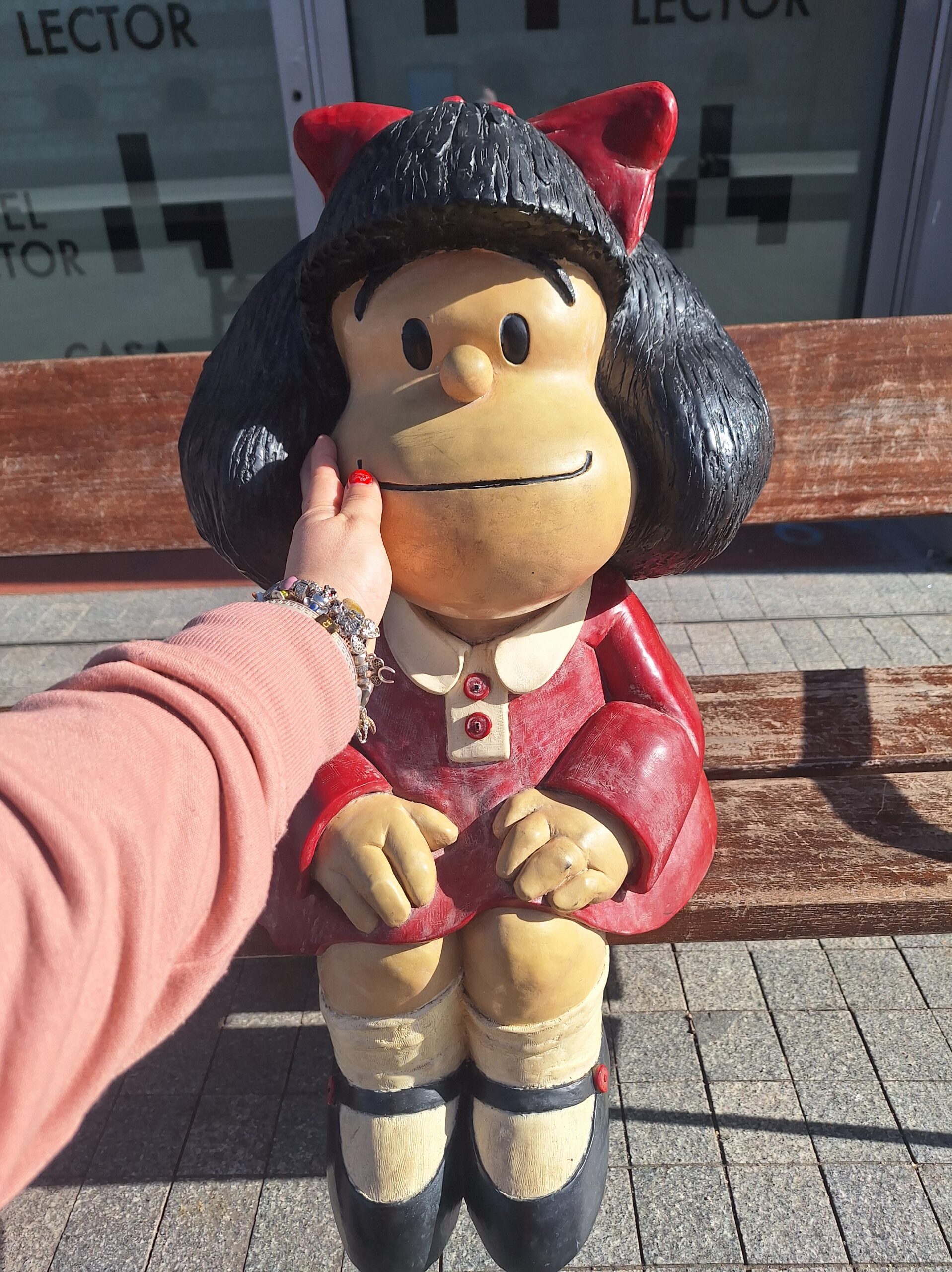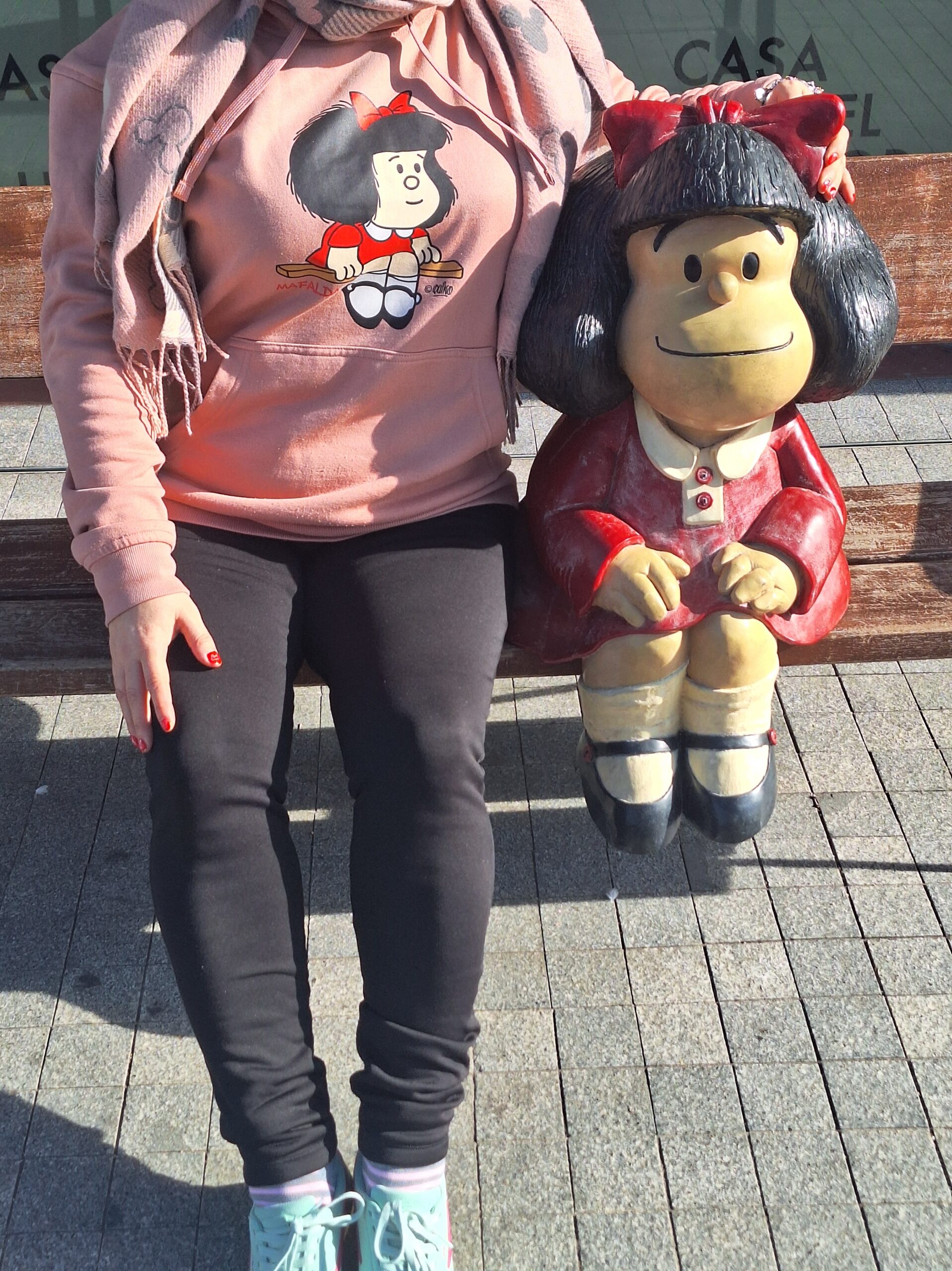 4. Vi la nueva estatua de Mafalda (el Domingo 22 febrero) que es mi personaje favorito de infancia la cual vi muchas veces en Oviedo y aquí nunca porque es nueva y me hacia ilusión verla.