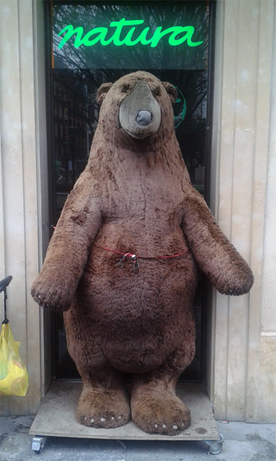 Un oso pardo a gran escala y firme sobre dos patas vigila las puertas de la tienda, no pasa desapercibido para nadie, adultos y niños se acercan a verlo. «Hay generaciones de padres que de pequeños se asustaban con él y ahora traen a sus hijos para que lo conozcan», cuenta Esther Galindo, encargada del local. La imagen del oso ha trascendido las fronteras del escaparate para pasar a formar parte del imaginario colectivo.