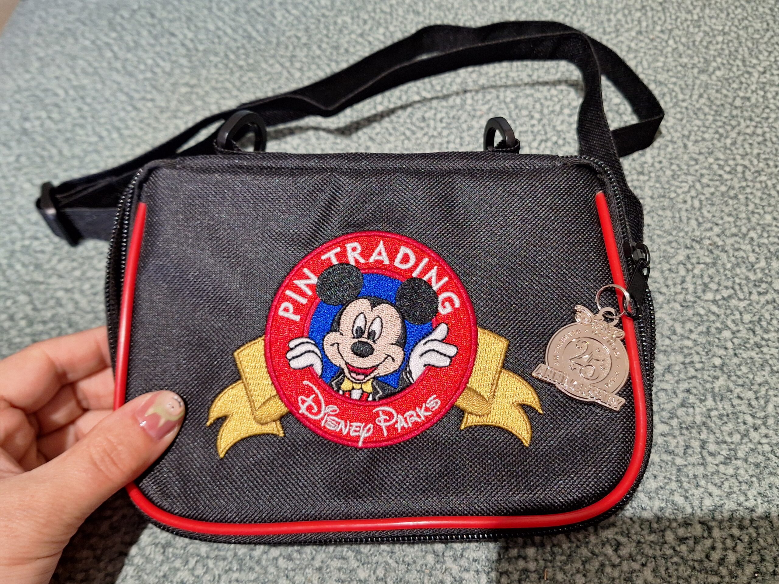 Aquí os muestro mi bolsa de cast member de Pin Trading y mis bolsos-mochila Pin trader: