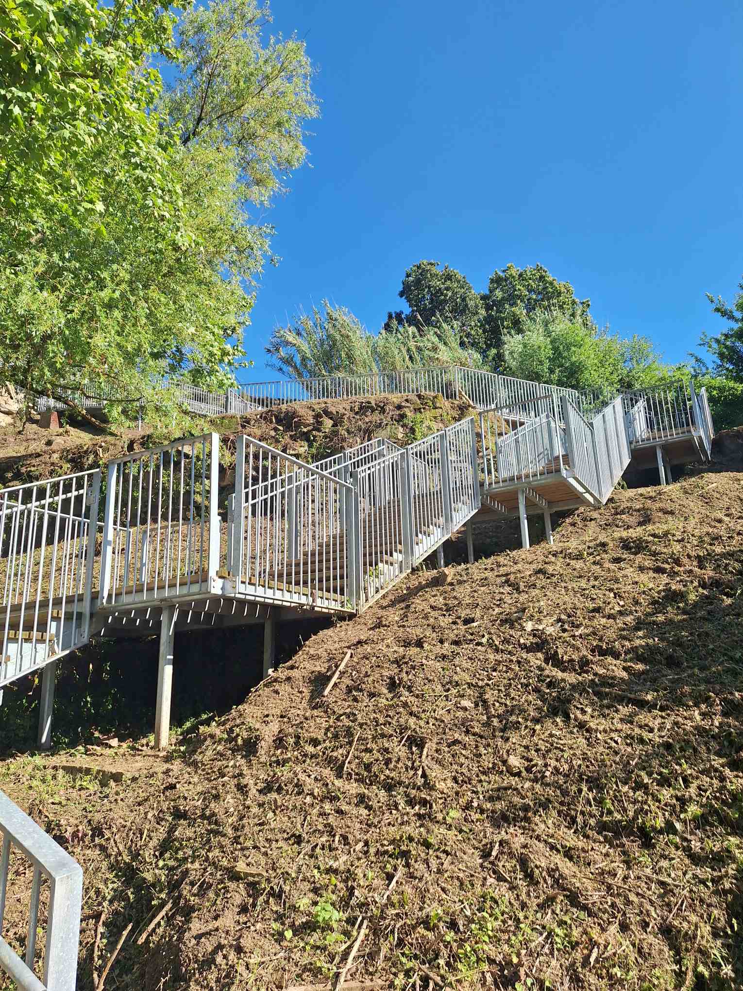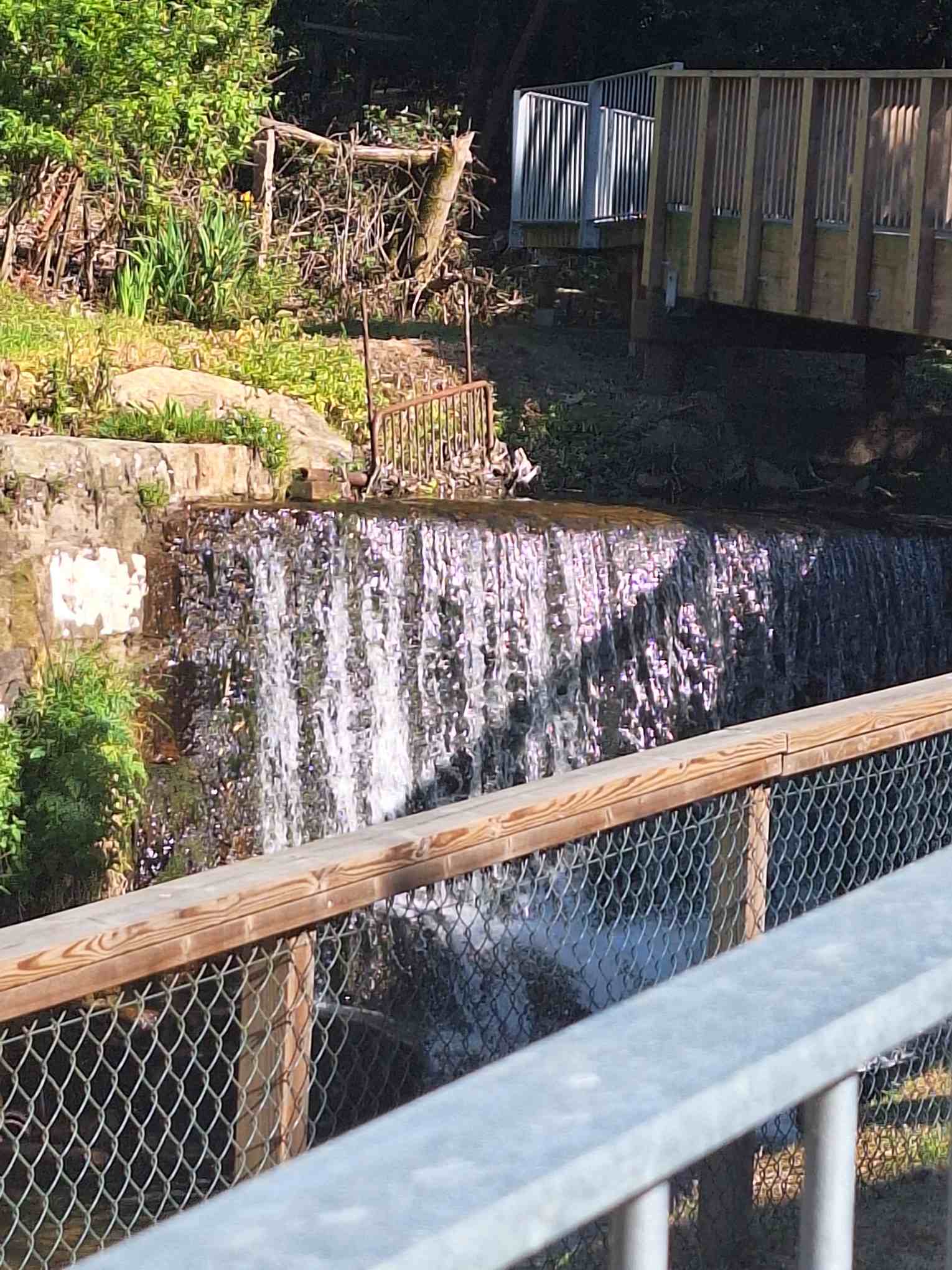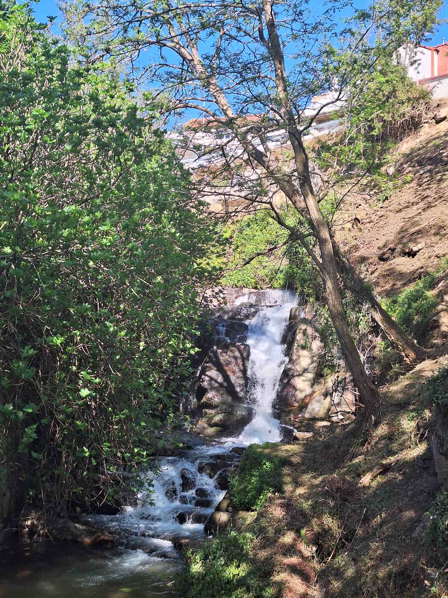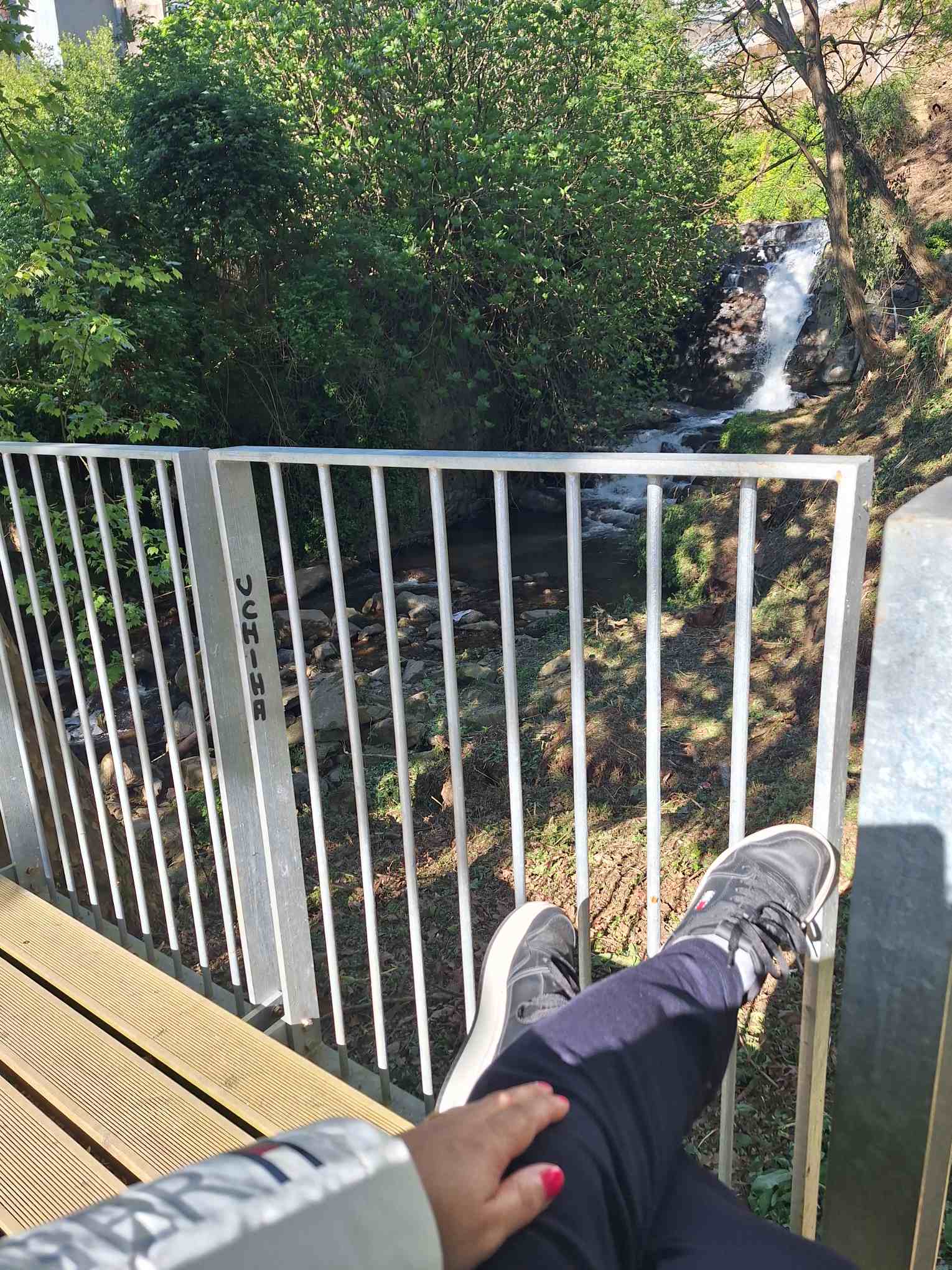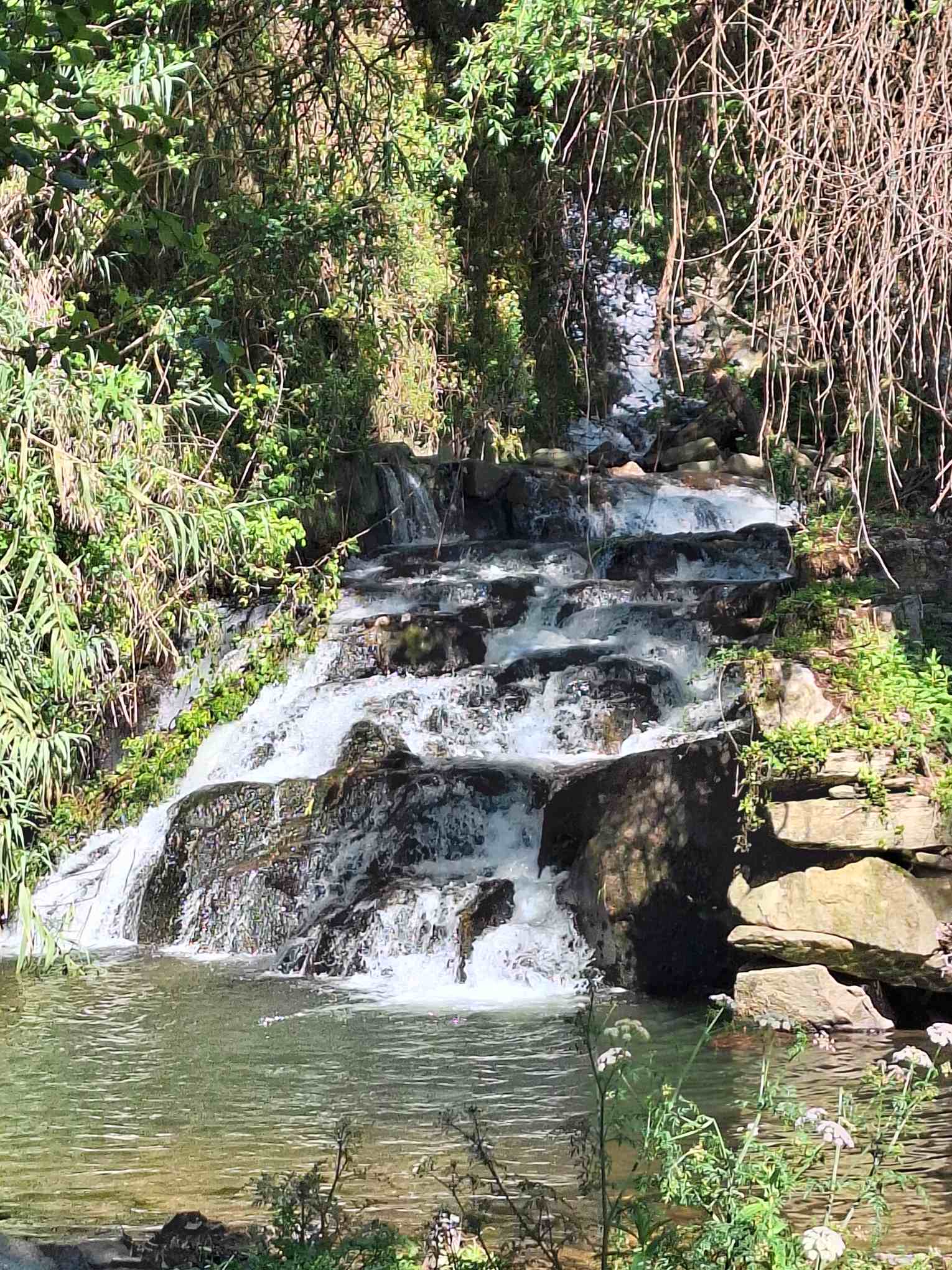 Donde hay pasarelas, escaleras, miradores puentes, vas por al del río, árboles, aves de todo tipo, mucha vegetación natural, y dos cascadas una muy grande y natural, y otra en otra zona más artificial.