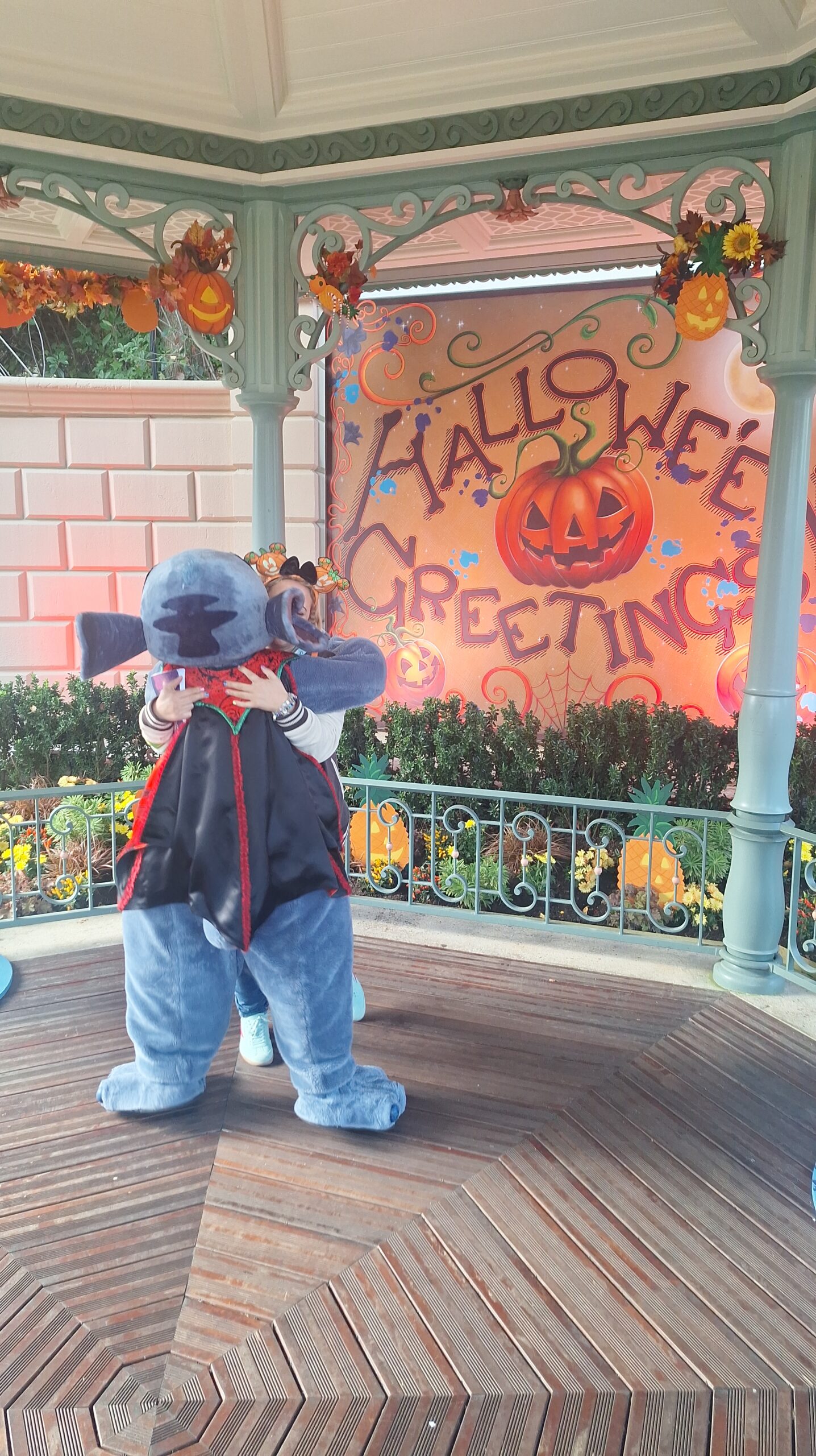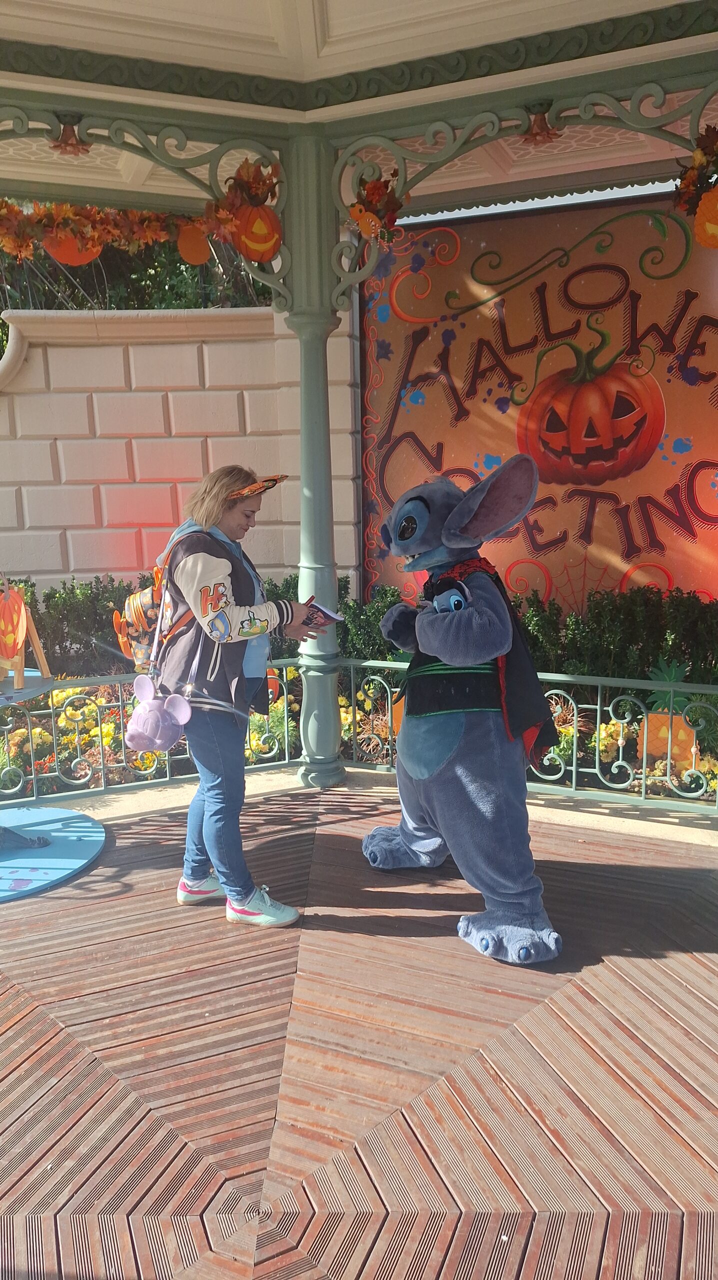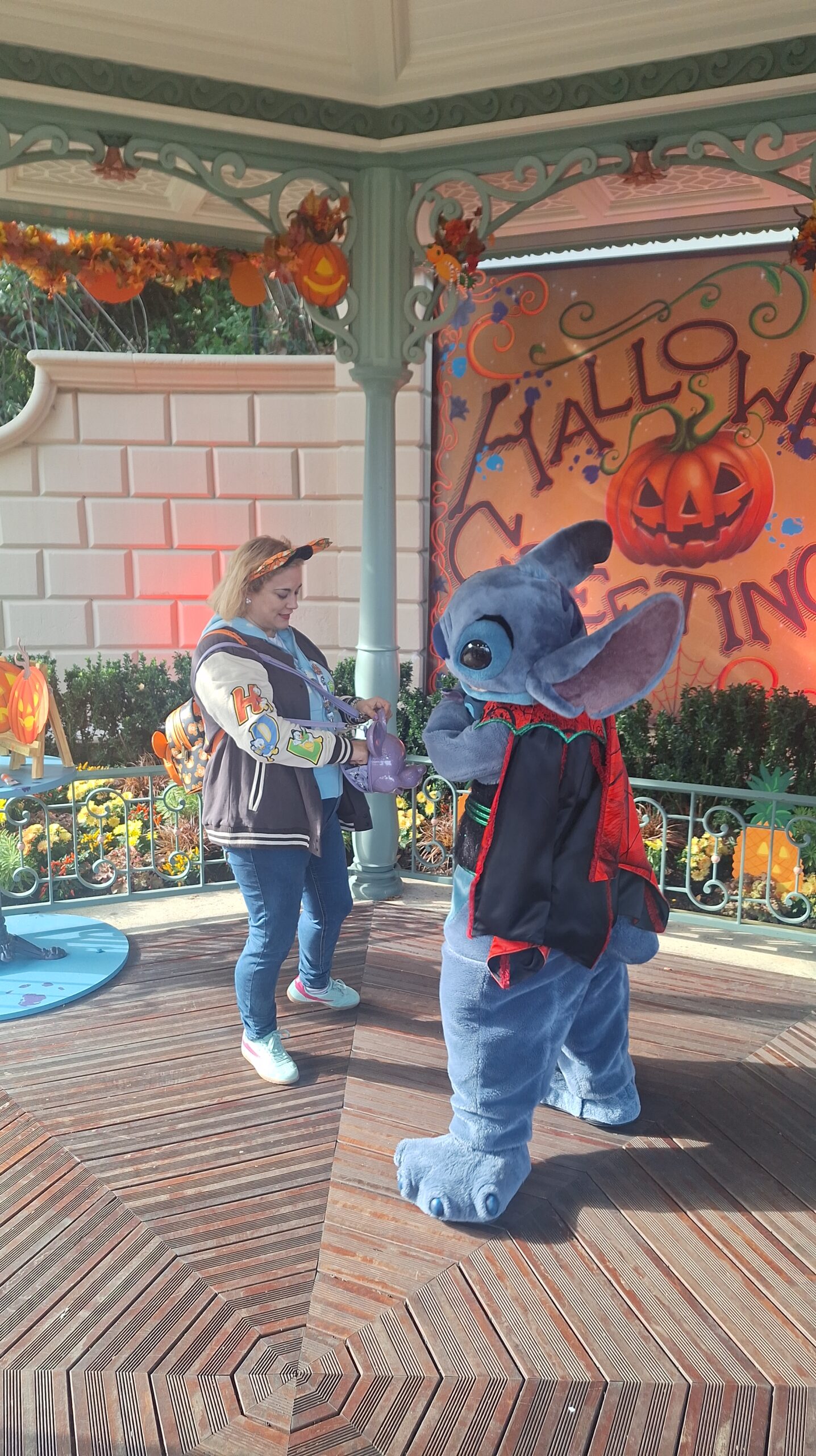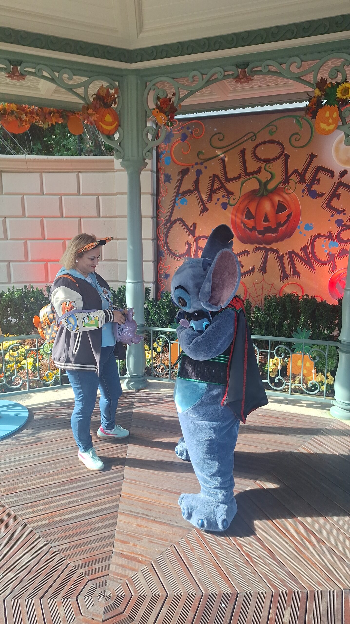 A Stitch le encantó mi mochila de calabaza de Halloween me dijo que: mi mochila y mis orejitas eran como su jardín (el de la zona donde el estaba) que iva muy guapa y que yo era su mejor ayudante y su mejor fan y yo le dije que el era mi personaje favorito y que estaba deseando estar con él y se alegro mucho, asi que este ha sido sin duda mi mejor encuentro❤️.